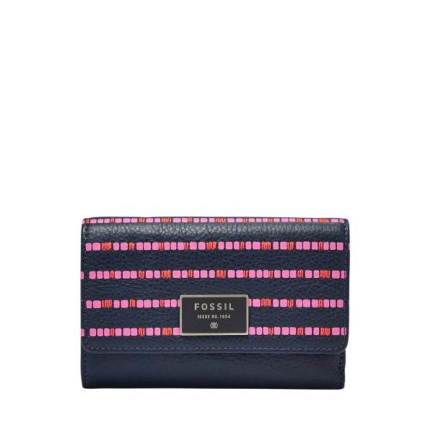 Fossil Dawson Emb Flap Multi Navy StripePembungkus Wallet dengan menggunakan Dust Wallet Polos